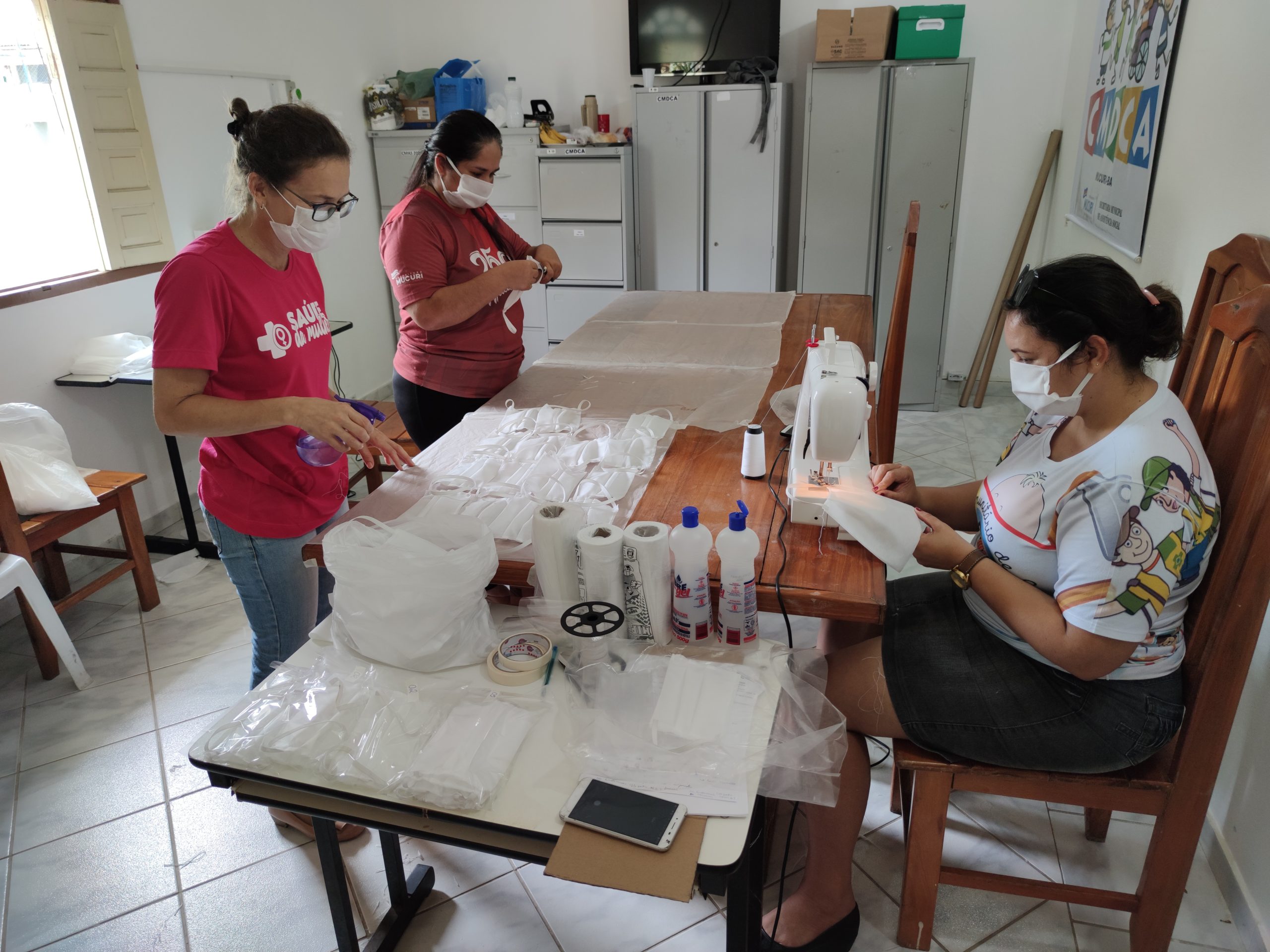Um grupo de voluntários composto por servidores da Secretaria de Saúde atuam, em parceria com a Secretaria de Assistência Social e Secretaria de Administração, na confecção de máscaras.